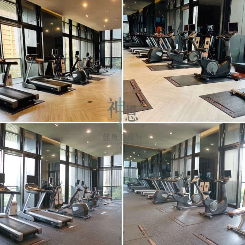 - 有氧區:跑步機、划船機、風扇車集中在一側,靠近電源